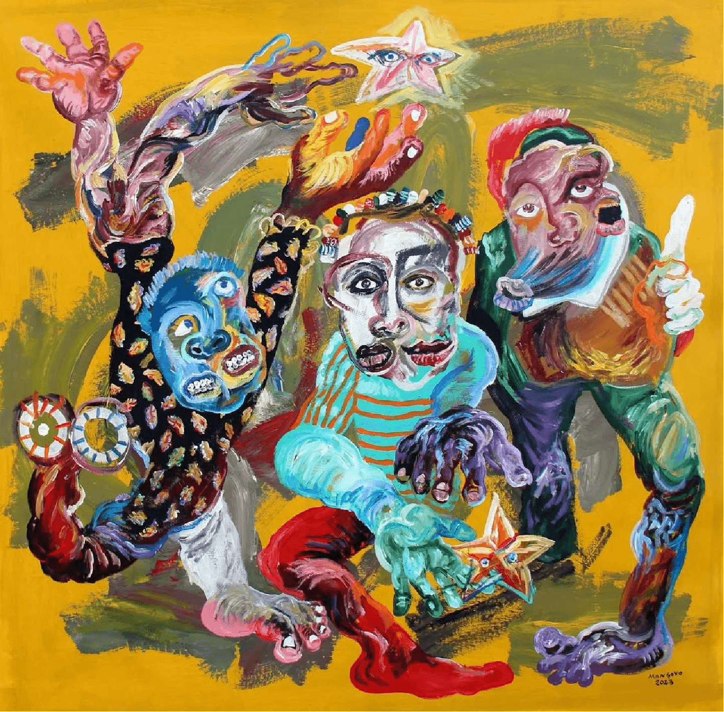Cristiano Mangovo, licenciado em Pintura pela Faculdade de Belas-Artes de Kinshasa, é um artista cuja prática abrange técnicas do Impressionismo ao Surrealismo. O seu trabalho centra-se na pintura e na instalação, experimentando constantemente novos métodos e materiais. Através destas abordagens, em particular o Surrealismo, Mangovo desenvolveu uma linguagem artística distinta, tornando o seu estilo inconfundível na cena da arte contemporânea africana.